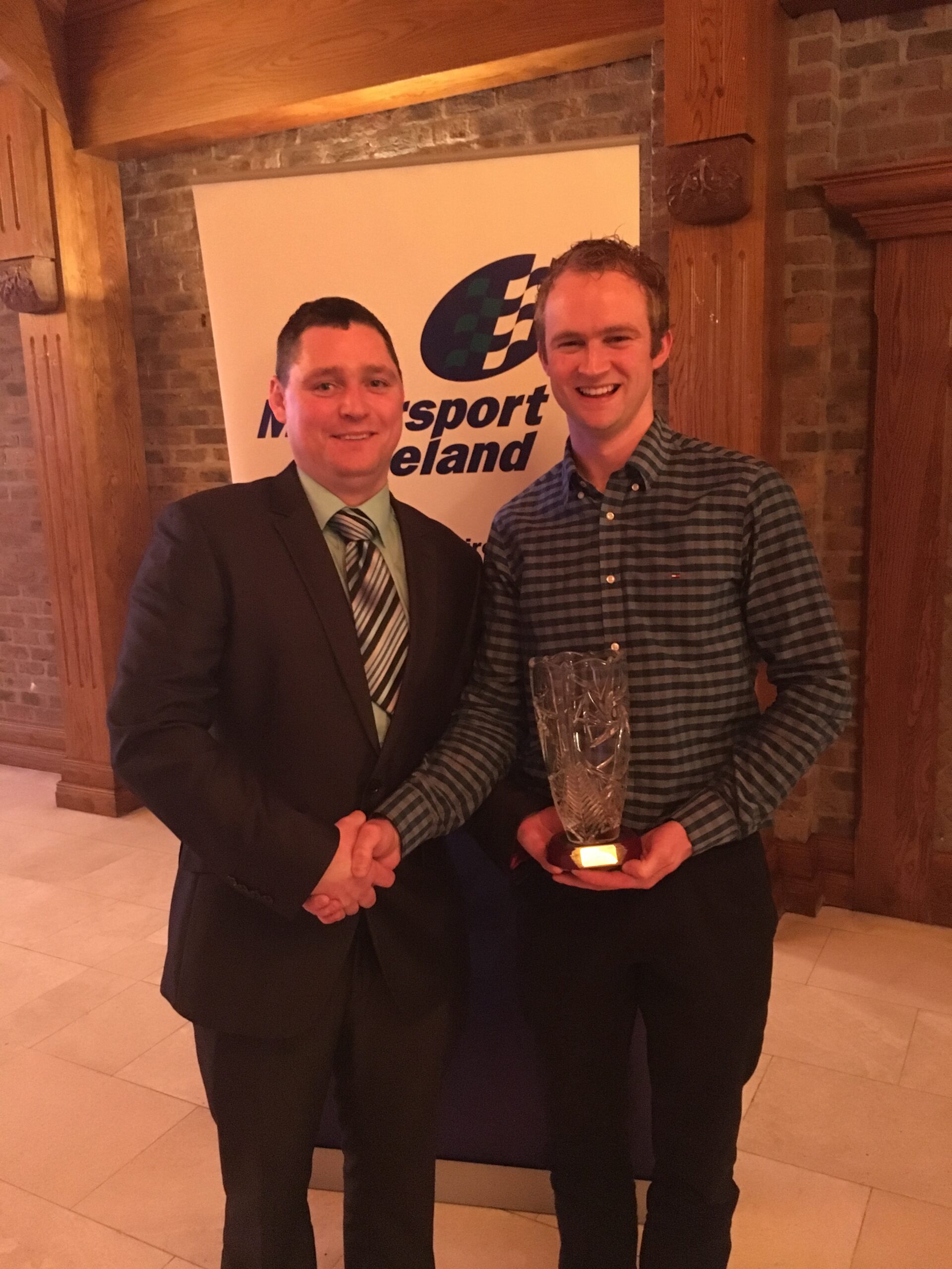 Adrian Deane presented with his Club Frank Harrington Championship runner up Award for 2015 by Autocross COC Stephen McGing