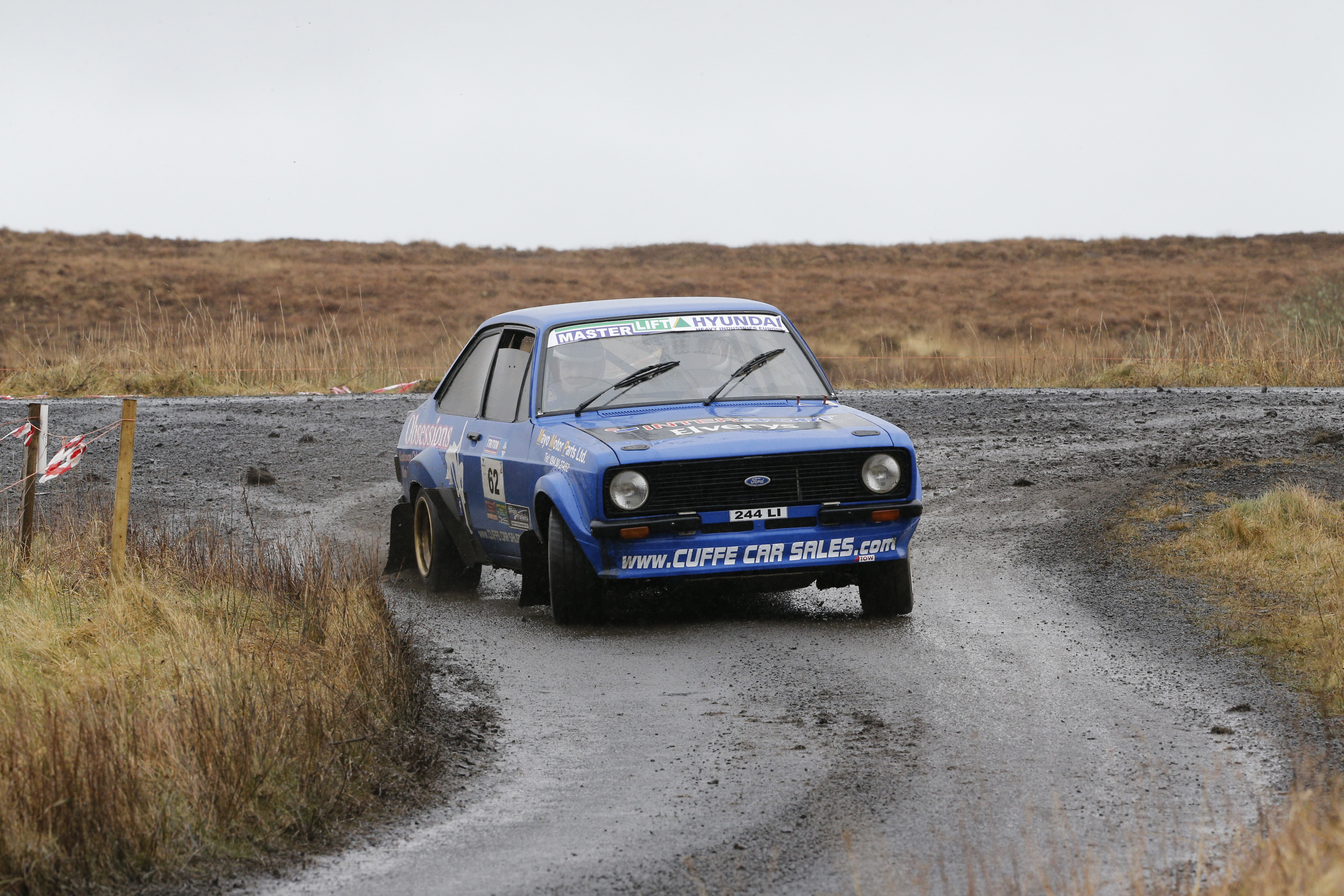 For former champion Declan Boyle the situation was even more serious as he traversed all three stages with a misted windscreen. Meanwhile, Gary Kiernan in sixth led the two-wheel drive category. On the third stage he had to contend with a water bottle on the floor of his Escort, he was 9.2 seconds ahead of the similar car of Damian Tourish, who was seeded at 54 and occupied seventh.