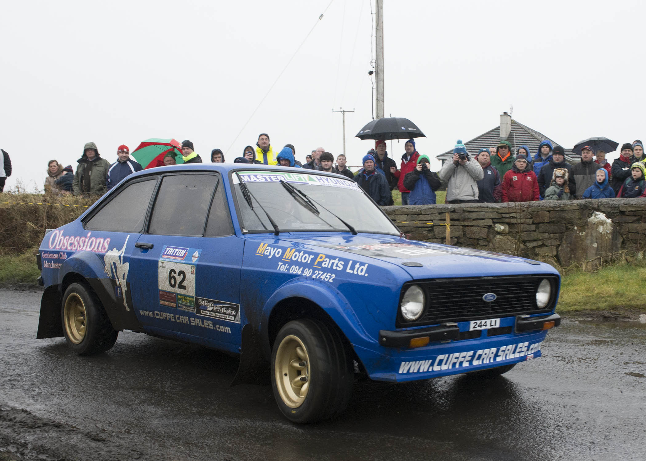 His demise elevated the impressive Damien Tourish, (Escort) into fifth place, he commented at the Ballina service, “I’m having a good steady run.” Cavan’s Gary Kiernan (Escort) was 7.4 seconds behind. Ed O’Callaghan (Escort) made great improvements in his stage times to hold eighth followed by Frank Kelly (Escort) and Group N leader Shane Maguire (Mitsubishi). Trevor Bustard (Mitsubishi), who was 15.4 seconds behind in second place in the category, had clutch troubles though the sixth stage.